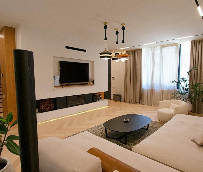 The territory offers 24 hour surveillance, a shared gym and sauna. You will find yourself or your kids playing on a playing green looking at a forest as their view, a truly unique scenery and ecosystem. You are able to experience the best of both worlds – city living with the rare gift of breathing fresh, forest-clean air right outside your door. The house is newly completed and never lived in. Inside the house you will find yourself with Bosh surround system, and the house is built around three floors.