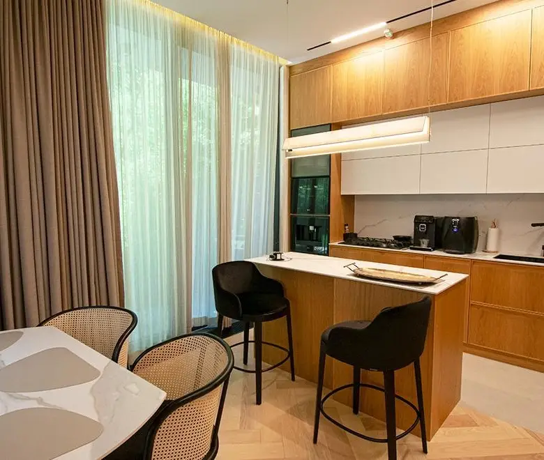 We present you a Townhouse in Krtsanisi Residence, a sophisticated 4-bedroom, 4-bathroom townhouse nestled in a serene eco-system, surrounded by woods. Features a spacious living room, cozy kitchen, master suite, meditation room, terrace, laundry, storage, cabinet, and 4 parking spaces. Built with premium materials and refined design. A rare blend of comfort, style, and nature — perfect for modern living.